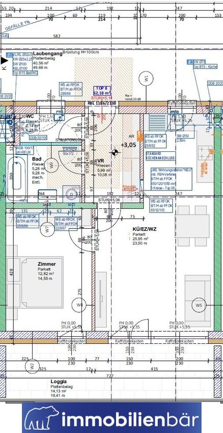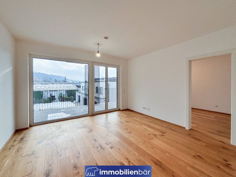 Top 8 bietet auf ca. 52,18m² Wohnfläche ein funktionales und gut proportioniertes 2-Zimmer-Konzept, ideal für Eigennutzer/innen wie auch für Anleger/innen. Der rund ca. 25,95 m² große Wohn- und Essbereich bildet das Herzstück der Wohnung. Große Fensterflächen sorgen für angenehme Lichtverhältnisse und schaffen einen fließenden Übergang zur ca. 14,13 m² großen Loggia. Die großzügig dimensionierte Loggia erweitert den Wohnraum ins Freie und bietet ausreichend Platz für Sitzbereich, Pflanzen oder eine kleine Outdoor-Lounge. Gerade in zentraler Lage stellt dieser geschützte Außenbereich einen besonderen Mehrwert dar. Das Schlafzimmer ist gut geschnitten und bietet ausreichend Raum für Bett, Schrank und zusätzlichen Stauraum. Das Badezimmer ist modern ausgestattet und funktional geplant.