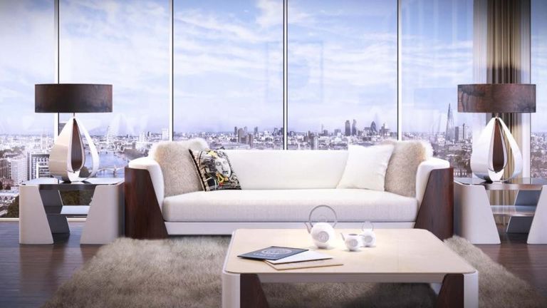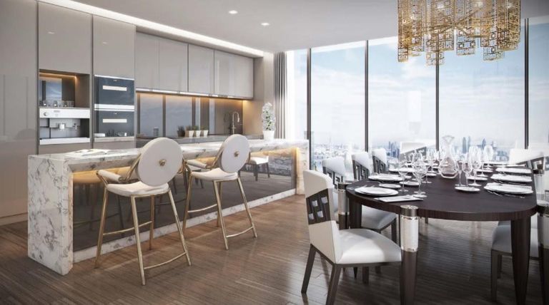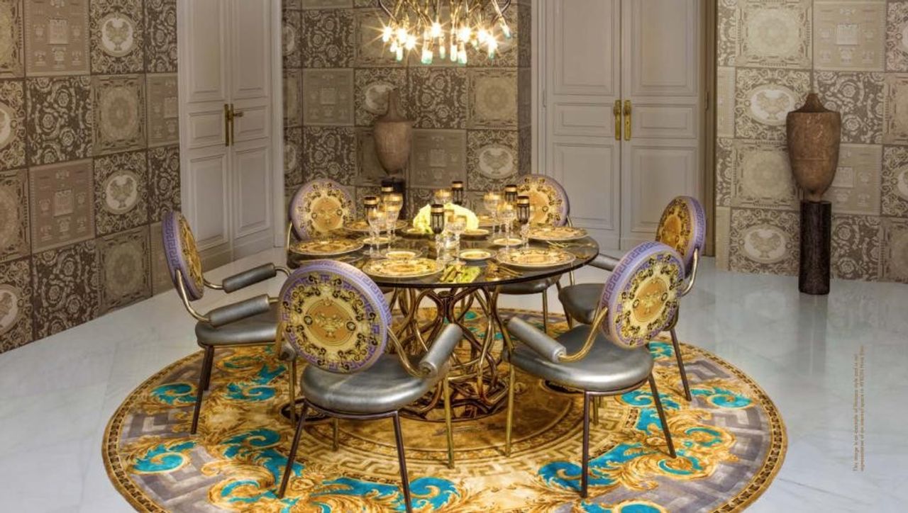 Nur hier können Sie in der ersten Zusammenarbeit zwischen diesem Luxusdesigner und einer neuen Wohnimmobilie in London aufwändige Innenräume zeigen, die von Versace Home entworfen wurden.