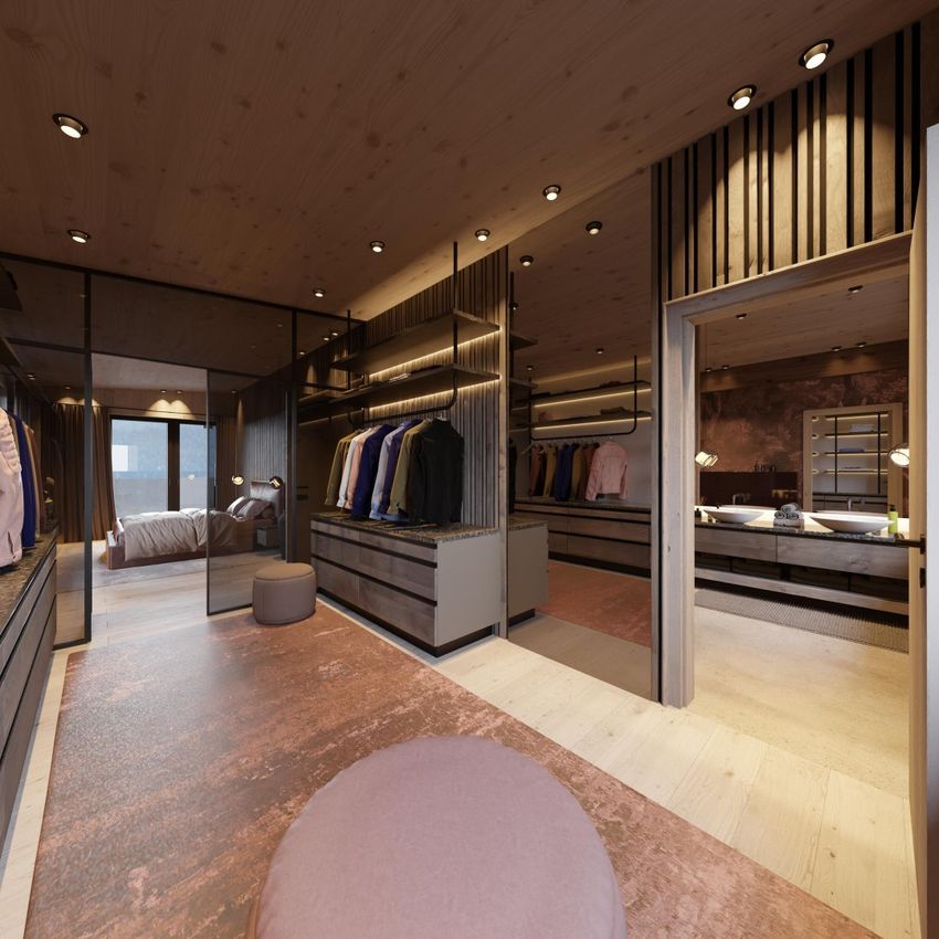 - Elternschlafzimmer, als abgeschlossener Bereich mit der Möglichkeit für große Schrank- und Stauraumlösungen und mit eigenem Badzugang