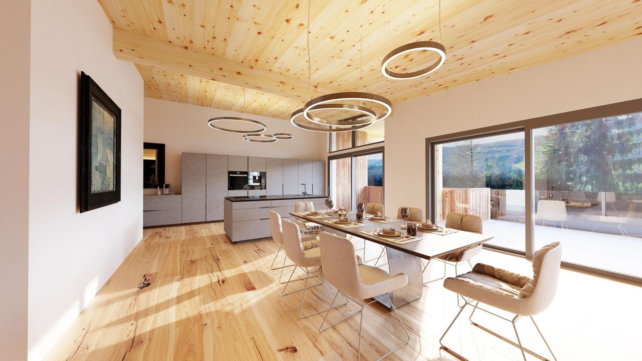 Das Penthouse überzeugt durch seinen alpinen Lifestyle und die einzigartige Aussicht auf die umliegende Bergwelt der Kitzbüheler Alpen.