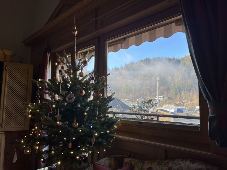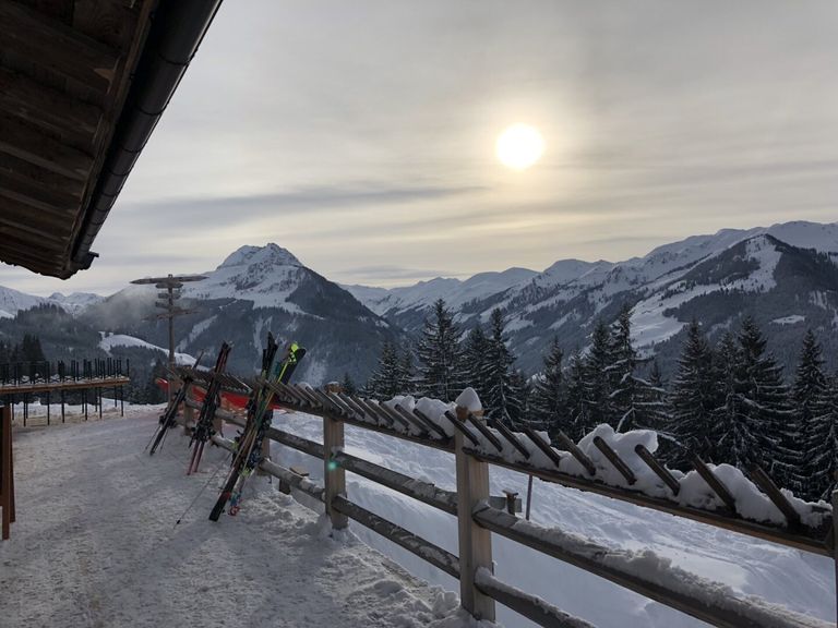 Vom Balkon aus schweift Ihr Blick über Dächer zur berühmten Streif! Nehmen Sie gemütlich Platz und genießen die herrliche Umgebung.
