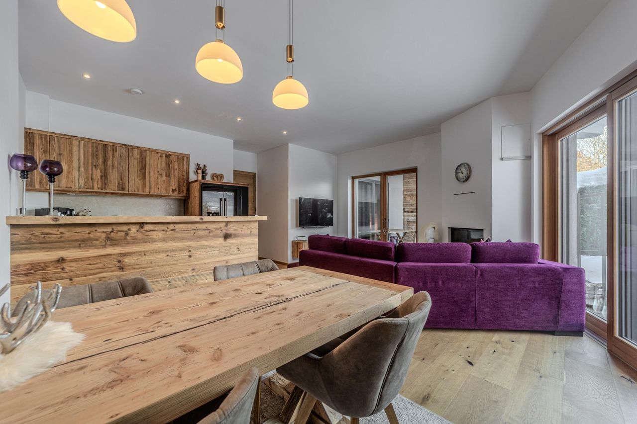 Viel Holz, eine großzügige, einladende Panoramaterrasse (uneinsehbar), eine sehr gepflegte, ruhige Gartenfläche, ein Lichthof (uneinsehbar), zwei TG-Plätze, ein Kellerabteil sowie ein sehr gutes Raumkonzept, Alpiner Lifestyle und Tiroler Gemütlichkeit bietet diese sehr schicke Gartenwohnung. Ein LIft ist vorhanden.