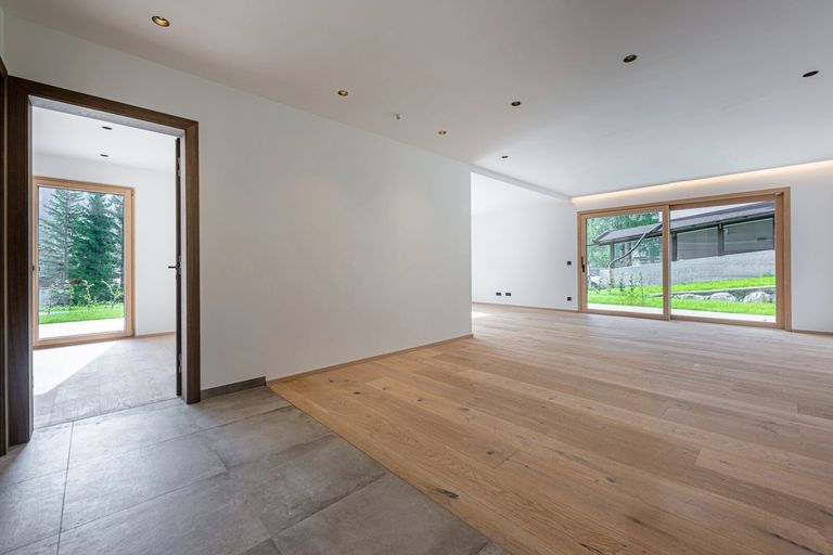 Wohnung Top 1: 4-Zimmer Maisonette-Gartenwohnung. Im Erdgeschoss betreten Sie die Wohnung. Hier empfängt Sie eine großzügige und lichtdurchflutete Wohnküche mit großen Fenster-Elementen, indirekter Beleuchtung und Zugang zu Terrasse und Garten. Alle Anschlüsse für eine hochwertige Küche mit Kochinsel sind vorhanden und auch Platz für die Garderobe wurde berücksichtigt. Zudem finden Sie auf dieser Etage ein großzügiges Masterschlafzimmer mit Bad en Suite , welches über eine Regenduschbrause und eine große Badewanne verfügt. Ein Gäste-WC komplettiert das Erdgeschoss. Über eine Treppe gelangen Sie in das Untergeschoss. Hier befinden sich zwei Schlafzimmer, ein Gästebadezimmer und ein Hauswirtschaftsraum mit Anschlüssen für Waschmaschine und Trockner.