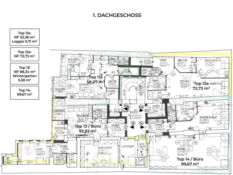 Sollten Sie Interesse an einer weiteren Fläche haben, könnte man auch das gegenüberliegende Büro TOP 14 dazu erwerben !