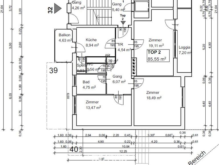 • Küche – ca. 8,94 m² • (Wohn-)Zimmer – ca. 19,11 m² • Zimmer 1 – ca. 13,47 m² • Zimmer 2 – ca. 18,49 m² • Badezimmer...