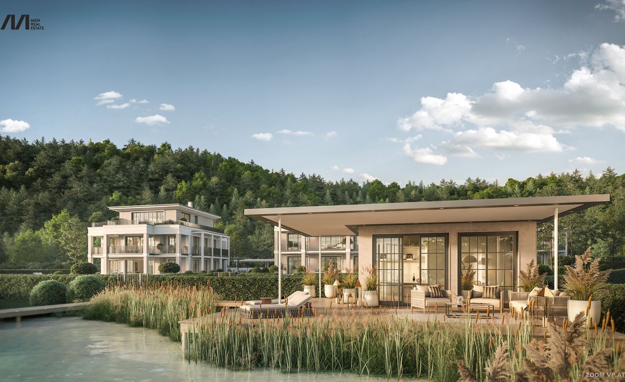 Wörthersees – eingebettet zwischen See, Golfplatz und sanften Hügeln. Jede Residenz ist so orientiert, dass Sonne, Aussicht und Privatsphäre in perfektem Gleichgewicht stehen. Die Architektur ist inspiriert von den klassischen Linien der Hamptons – neu interpretiert in einer modernen Formsprache: großzügige Proportionen, natürliche Materialien, dezente Farbwelten.