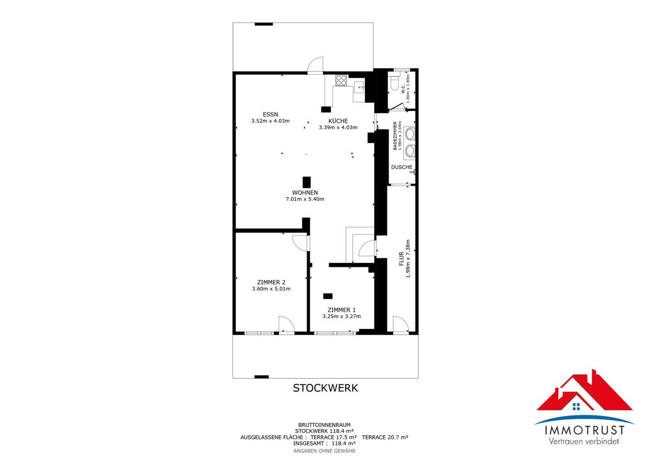 Ergänzt wird das Raumangebot durch ein großzügiges Schlafzimmer mit ca. 22,70 m², das ausreichend Platz für einen komfortablen Rückzugsbereich bietet, sowie ein weiteres Zimmer mit ca. 10,90 m², das sich ideal als Kinderzimmer, Gästezimmer oder Arbeitszimmer nutzen lässt. Ein geräumiger Vorraum mit ca. 10,50 m² sorgt zusätzlich für ein angenehmes Entrée und unterstreicht die durchdachte Raumaufteilung.