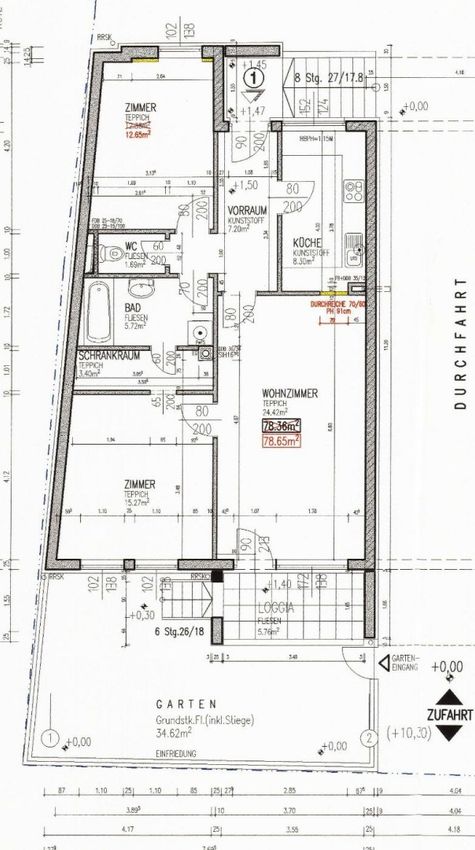 Zum Verkauf gelangt eine äußerst gepflegte 3-Zimmer-Gartenwohnung mit ca. 79 m² Wohnfläche in attraktiver Lage von 2000 Stockerau. Die Wohnung befindet sich im Erdgeschoss einer 1999 erbauten Wohnhausanlage, ist jedoch leicht erhöht über Straßenniveau gelegen, wodurch sie mehr Privatsphäre bietet. Besonders hervorzuheben ist der Garten mit ca. 35 m², der in Kombination mit der ca. 6 m² großen Loggia einen hohen Wohn- und Freizeitwert bietet. Diese Außenflächen steigern nicht nur die Attraktivität für Mieter, sondern gewährleisten auch langfristig eine gute Vermietbarkeit.
