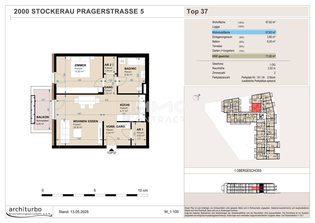 Genießen Sie die zentrale Lage – nur wenige Minuten vom Stadtzentrum Stockerau entfernt. Die architektonisch ansprechende, L-förmige Anlage erstreckt sich über drei oberirdische Geschosse und verfügt über eine Tiefgarage.