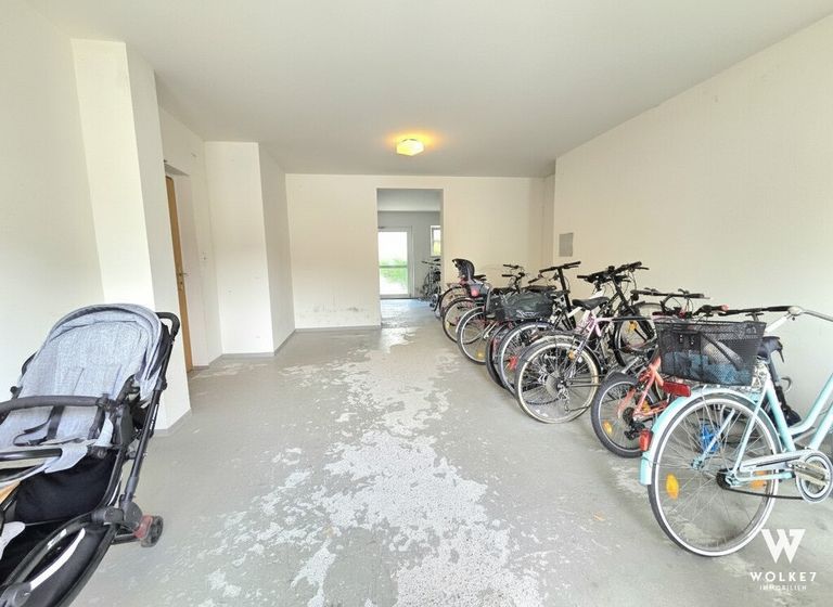 Neben einem Kellerabteil bietet die Wohnhausanlage auch einen großzügigen Fahrradraum.