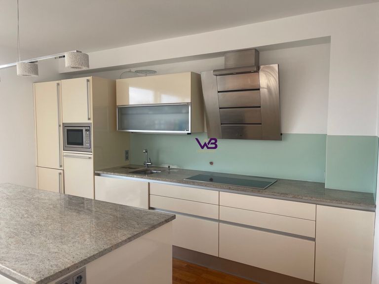 - Großzügiger Wohnessbereich (57m²) mit Einbauküche, Kamin und Balkonausgang (26m²)