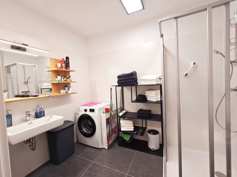 - Bad 5,82 m², verliest, mit Dusche, Handwaschbecken, Toilette und Waschmaschinenanschluss