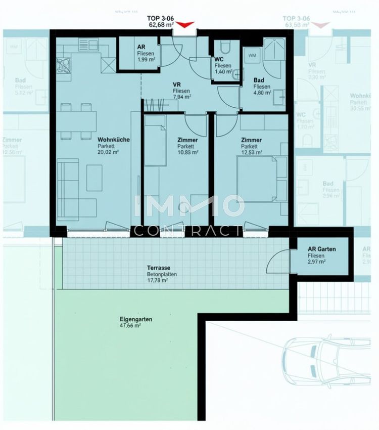 - Private Freiflächen bei jeder Einheit (Eigengarten, Terrasse oder Balkon)