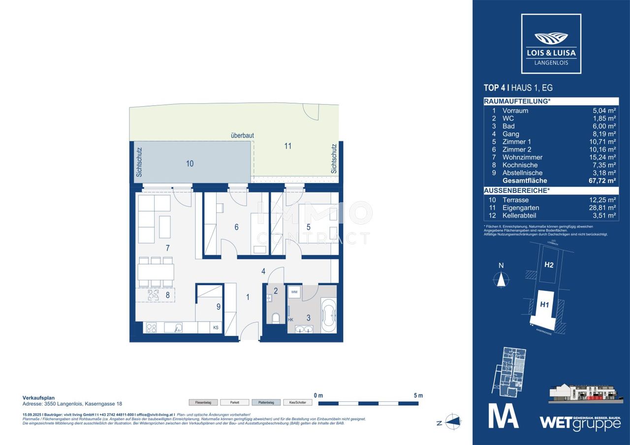 Besondere Ausstattungsmerkmale wie Bad en Suite, begehbare Schrankräume, großzügige Dachterrassen bis zu 33 m² sowie private Gärten bis zu 71 m² bieten zusätzlichen Komfort und viel Freiraum für individuelle Wohnträume. Edles Parkett, elegante Fliesen und die Vorbereitung für Klimageräte im Dachgeschoß sorgen für ein angenehmes Wohngefühl zu jeder Jahreszeit.