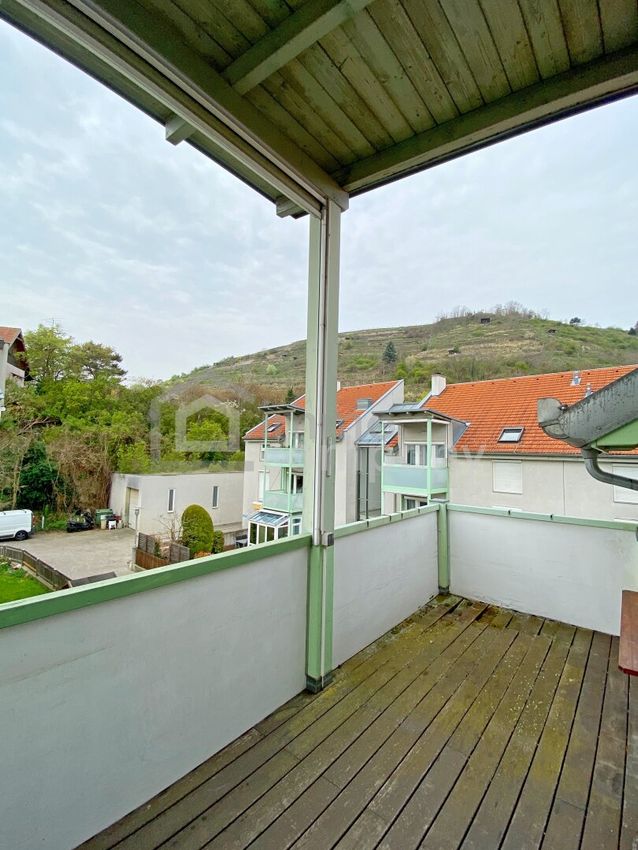 Der südwestliche gelegene Balkon lädt dazu ein, die Abendsonne zu genießen und ist in den Innenhof ausgerichtet – ein idealer Ort zum Entspannen nach einem langen Tag. Ein Highlight ist der Ausblick auf der einen Seite auf die Weinberge und auf der anderen Seite auf Stift Göttweig.