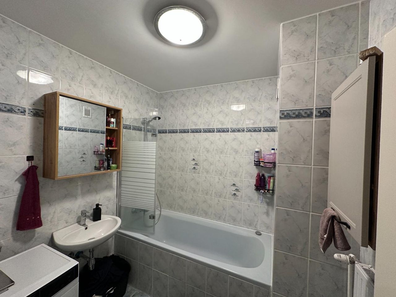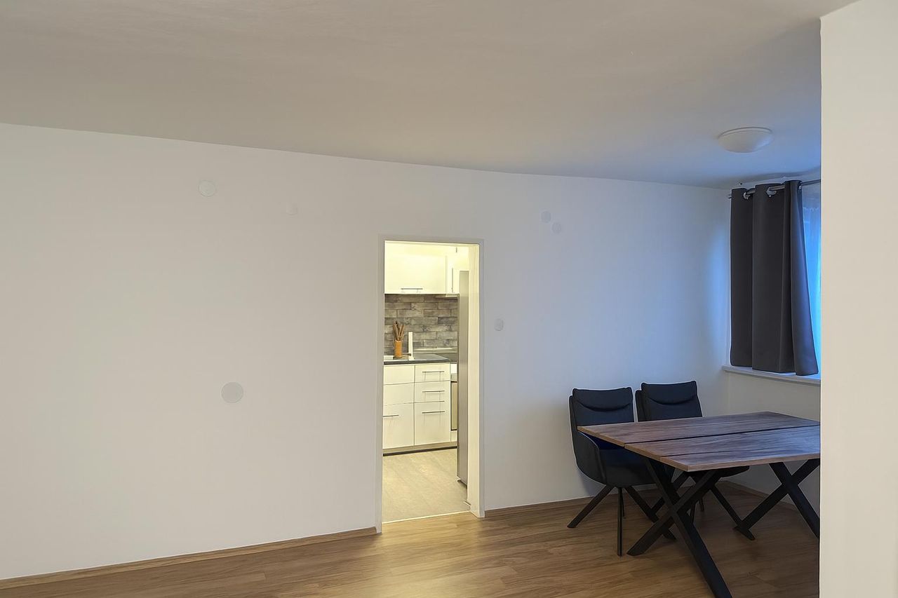 Die Wohnung verfügt über ein zentrales Vorzimmer, ein großes Wohnzimmer mit Loggia , ein Schlafzimmer, ein Kinderzimmer, eine möblierte Küche, ein saniertes Bad mit Wanne sowie ein separates WC und präsentiert sich in einem gepflegten Zustand.