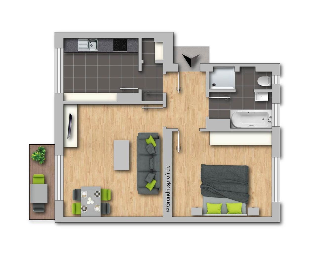 • Wohn-/Nutzfläche: ca. 61,55 m²