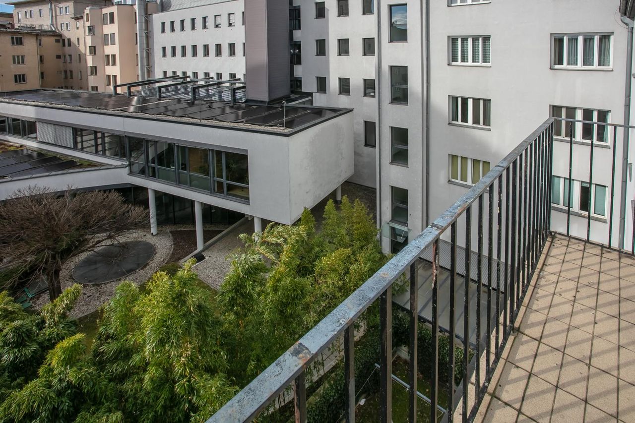 • Ruhiger Innenhof mit Blick Richtung Neubau der Kremser Bank