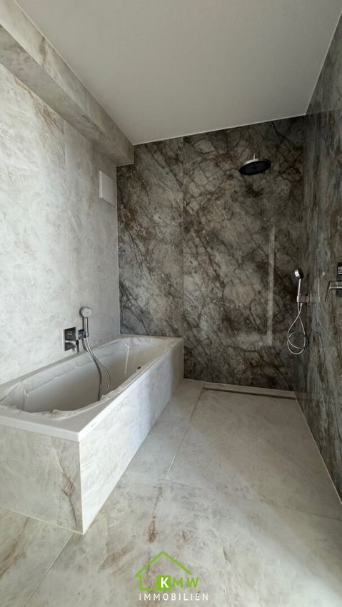 Das Wohnambiente ist modern und luxuriös, es gibt Fliesen, Parkett, Raffstore, Fußbodenheizung, Smart Home und vieles mehr !