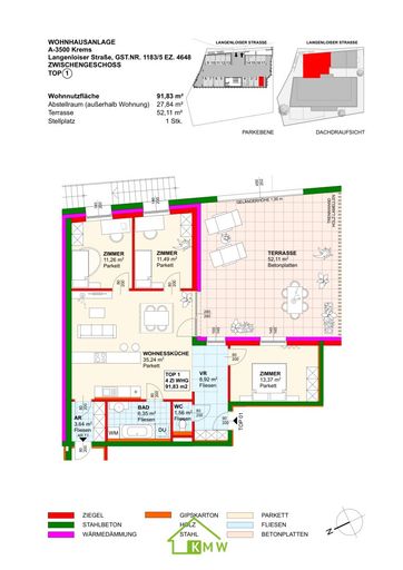 Die Wohnung bietet eine Wohnfläche von ca. 91,83m² und eine ca. 52,11m² Terrasse.