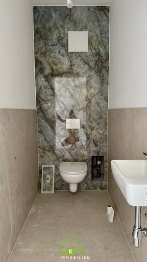 Das Wohnambiente ist modern und luxuriös, es gibt Fliesen, Parkett, Raffstore, Fußbodenheizung, Smart Home und vieles mehr !