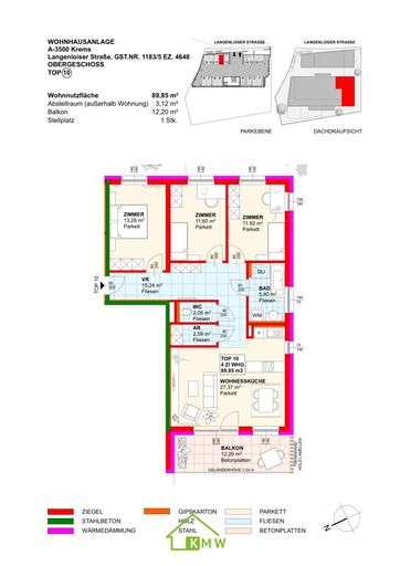 Die Wohnung bietet eine Wohnfläche von ca. 89,85m² und eine ca. 12,51m² Terrasse.