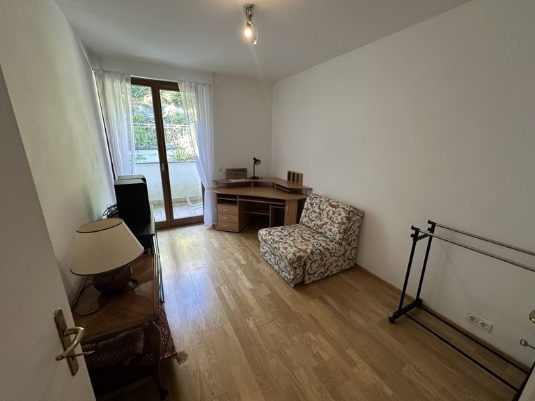 Die Wohnung verfügt über einen einladenden Vorraum, eine separate Küche, ein helles Wohnzimmer sowie zwei komfortable Schlafzimmer. Das Badezimmer wird durch ein zusätzliches Gäste-WC ergänzt. Zwei Terrassen auf der Süd- und Nordseite laden dazu ein, entspannte Stunden im Freien zu genießen. Darüber hinaus stehen zwei praktische Abstellräume, ein eigenes Kellerabteil sowie ein Garagenstellplatz zur Verfügung.