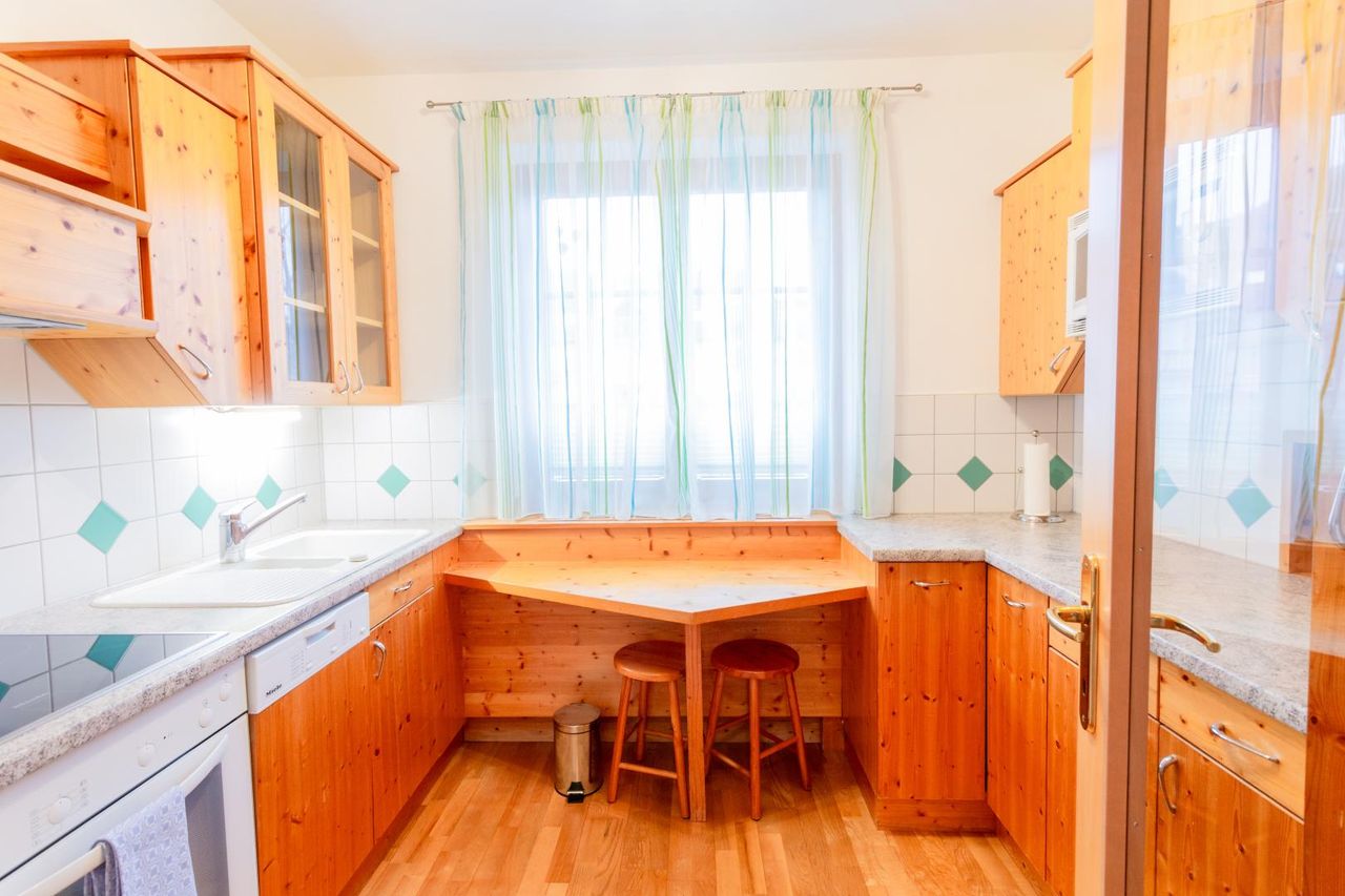 • eine gut ausgestattete Küche (ca. 7 m²) mit Durchreiche in das Wohn-Esszimmer
