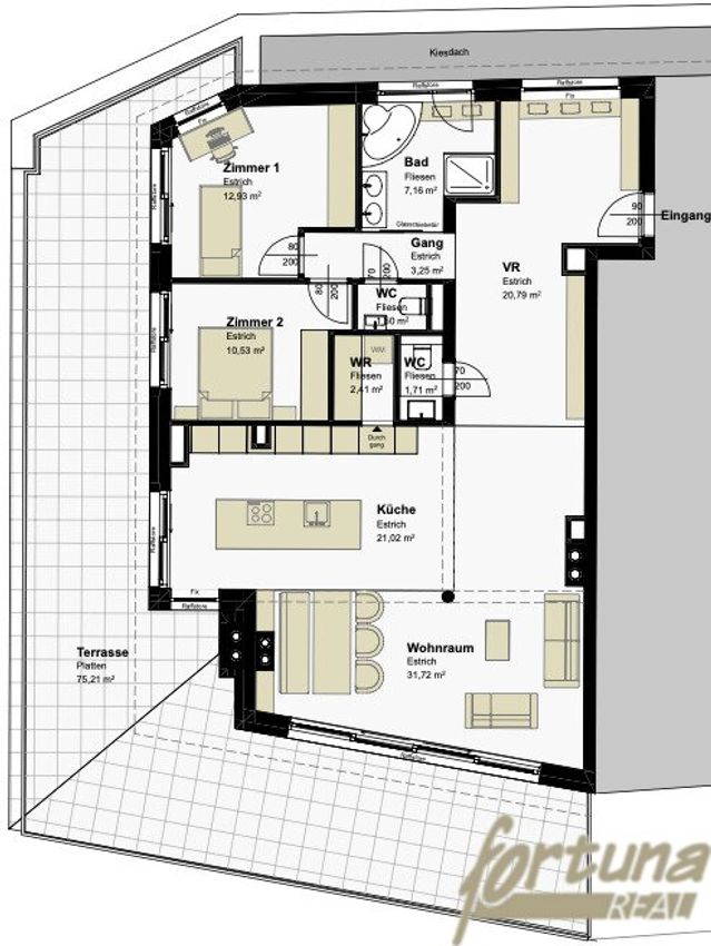 Beim Kauf der Wohnung besteht die Möglichkeit, einen Kfz-Stellplatz in der Tiefgarage mit 12,5 m2 und zusätzlichen 17,68 m2 abgetrennter Stellfläche zu erwerben. Der Kaufpreis für diese Flächen beträgt zusätzlich € 26.000,--