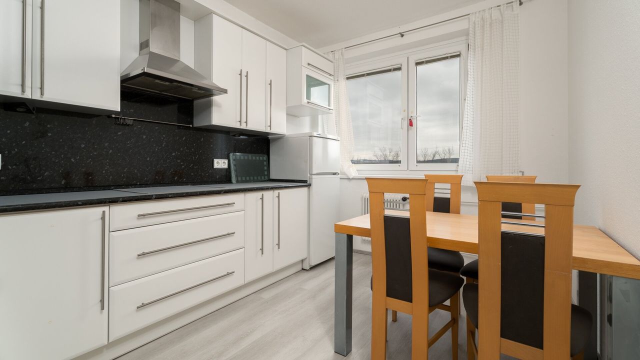 Mit dem Lift gelangen Sie in den 6. Stock. Der Vorraum ist geräumig und bietet genügend Platz für eine Garderobe und einen Schuhschrank. Linkerhand steht Ihnen ein praktischer Abstellraum zur Verfügung, auf der rechten Seite befinden sich 3 Zimmer, welche sich ideal in Wohnzimmer, Schlafzimmer und Kinderzimmer/Home-Office-Büro einteilen lassen. Alle Zimmer sind hell und zentral begehbar, daher ist die Wohnung ebenso WG-tauglich. Das größte der 3 Zimmer verfügt über eine Loggia, von welcher Sie das Treiben von Krems beobachten können. Die Küche bietet nicht nur Platz für eine gemütliche Essecke, sondern auch einen Ausblick auf das Stift Göttweig. Vorbei am separaten WC gelangen Sie ins Badezimmer, welches mit Wanne, Handwaschbecken und Waschmaschinenanschluss ausgestattet ist.