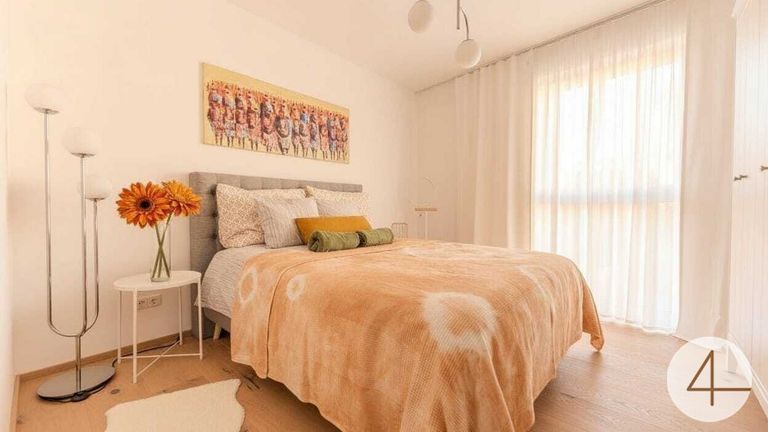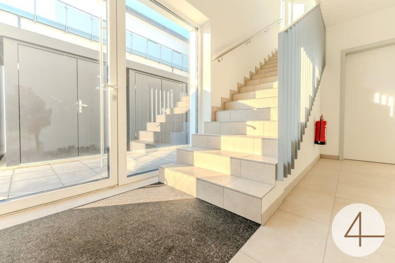 Parkettböden, Fliesen, Fußbodenheizung und einer energieeffizienten Luftwärmepumpe. Optional können Sie einen überdachten Parkplatz um € 15.000 oder einen freien Stellplatz um € 10.000 erwerben. Die gezeigte Einrichtung ist nicht im Kaufpreis enthalten.