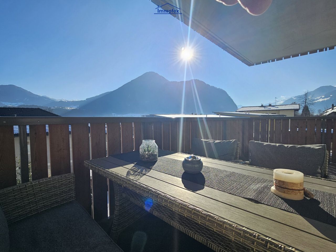 Sonniger Balkon / Terrasse mit herrlichem Bergblick
