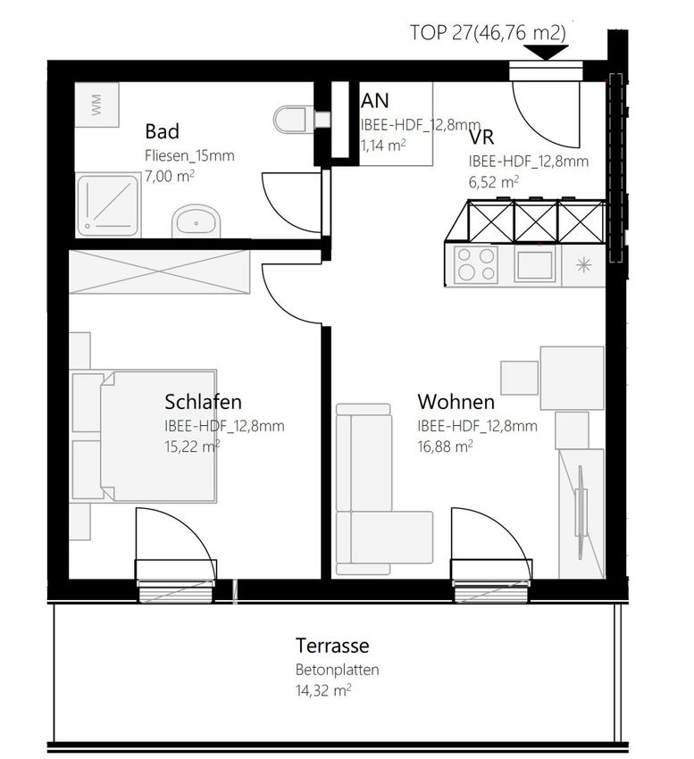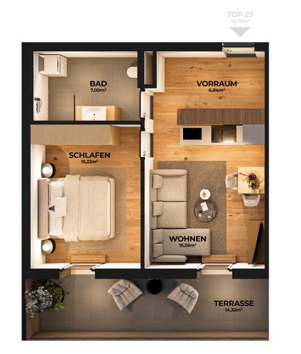 Wohnfläche ca. 45 m² + 15 m² SW-Terrasse