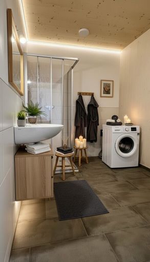 - Modernes Badezimmer mit Dusche und Waschmaschinenanschluss