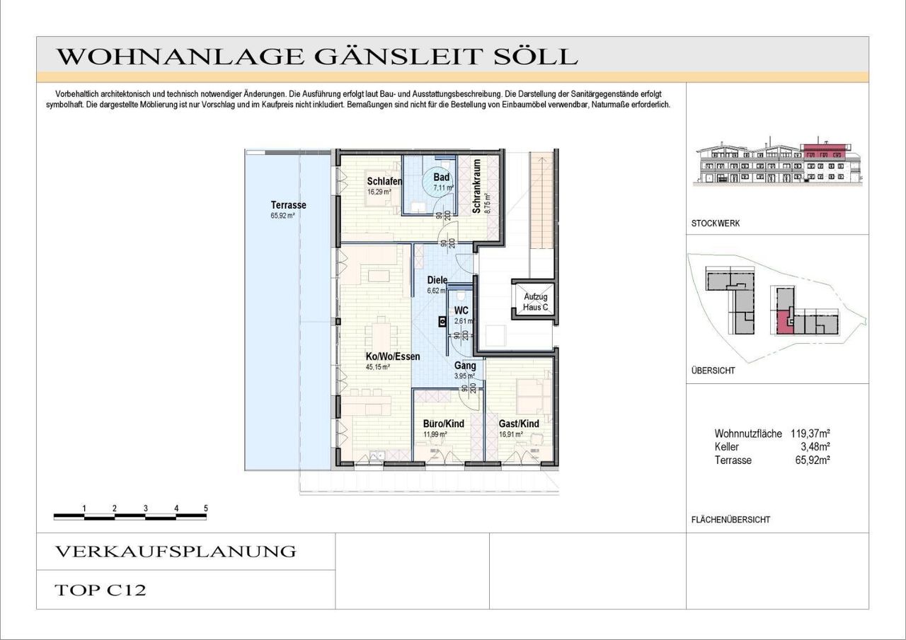 Penthouse-Wohnung Top C12 Dieses exklusive Penthouse in der Wohnanlage Gänsleit Söll vereint modernes Design, alpine Eleganz und ein Höchstmaß an Individualität. Die Wohnung wird im Edelrohbau-Zustand verkauft und bietet somit die Möglichkeit, sämtliche Böden, Fliesen, Anschlüsse und Armaturen selbst auszuwählen und den Innenausbau nach den eigenen Vorstellungen zu gestalten. Mit einer Wohnnutzfläche von rund 119,37 m² sowie einer beeindruckenden Terrasse mit rund 66 m² eröffnet diese Penthousewohnung großzügige Wohnräume und atemberaubende Ausblicke auf die Tiroler Bergwelt . Großzügige Glasfronten schaffen ein lichtdurchflutetes Ambiente und verbinden Wohnraum und Natur auf harmonische Weise. Das Projekt umfasst insgesamt 42 hochwertige Wohnungen, verteilt auf...