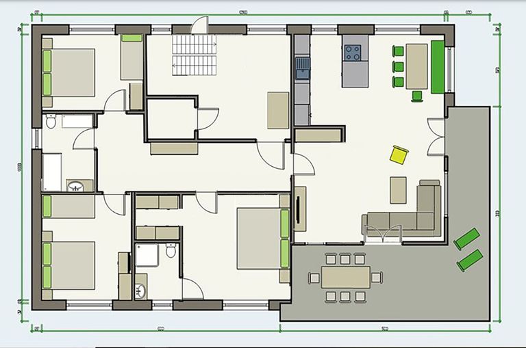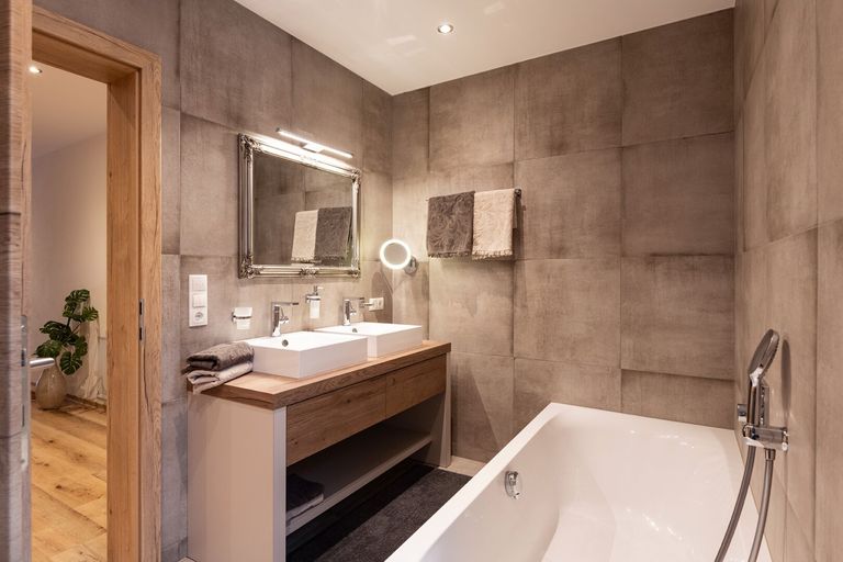 Genießen Sie die Vorzüge von zwei luxuriösen Bädern, die für Komfort und Privatsphäre sorgen – ideal für Familien oder Gäste. Die Fußbodenheizung sorgt für eine behagliche Wärme, während große Fensterfronten den Blick ins Grüne und viel Tageslicht hereinlassen.