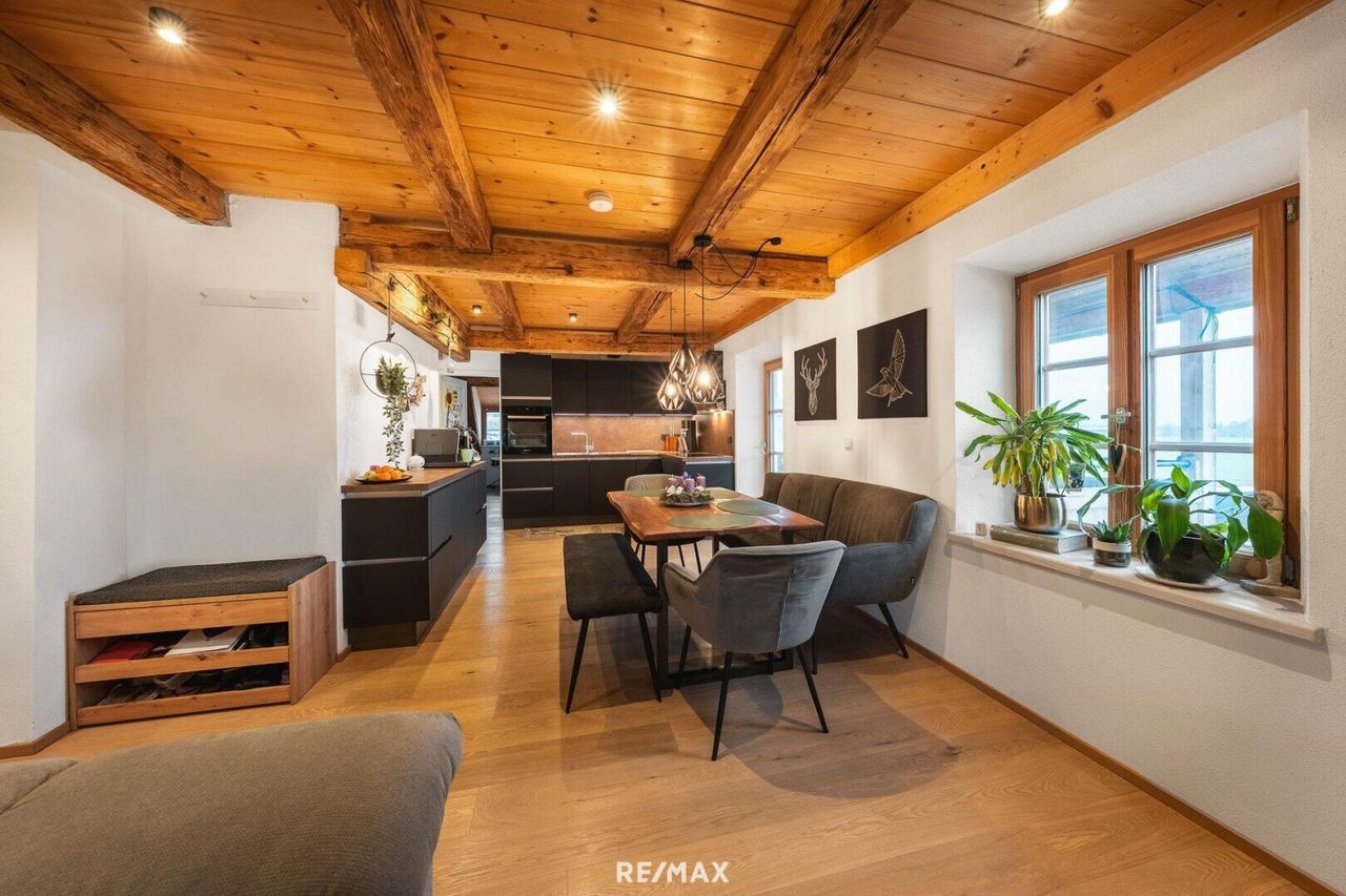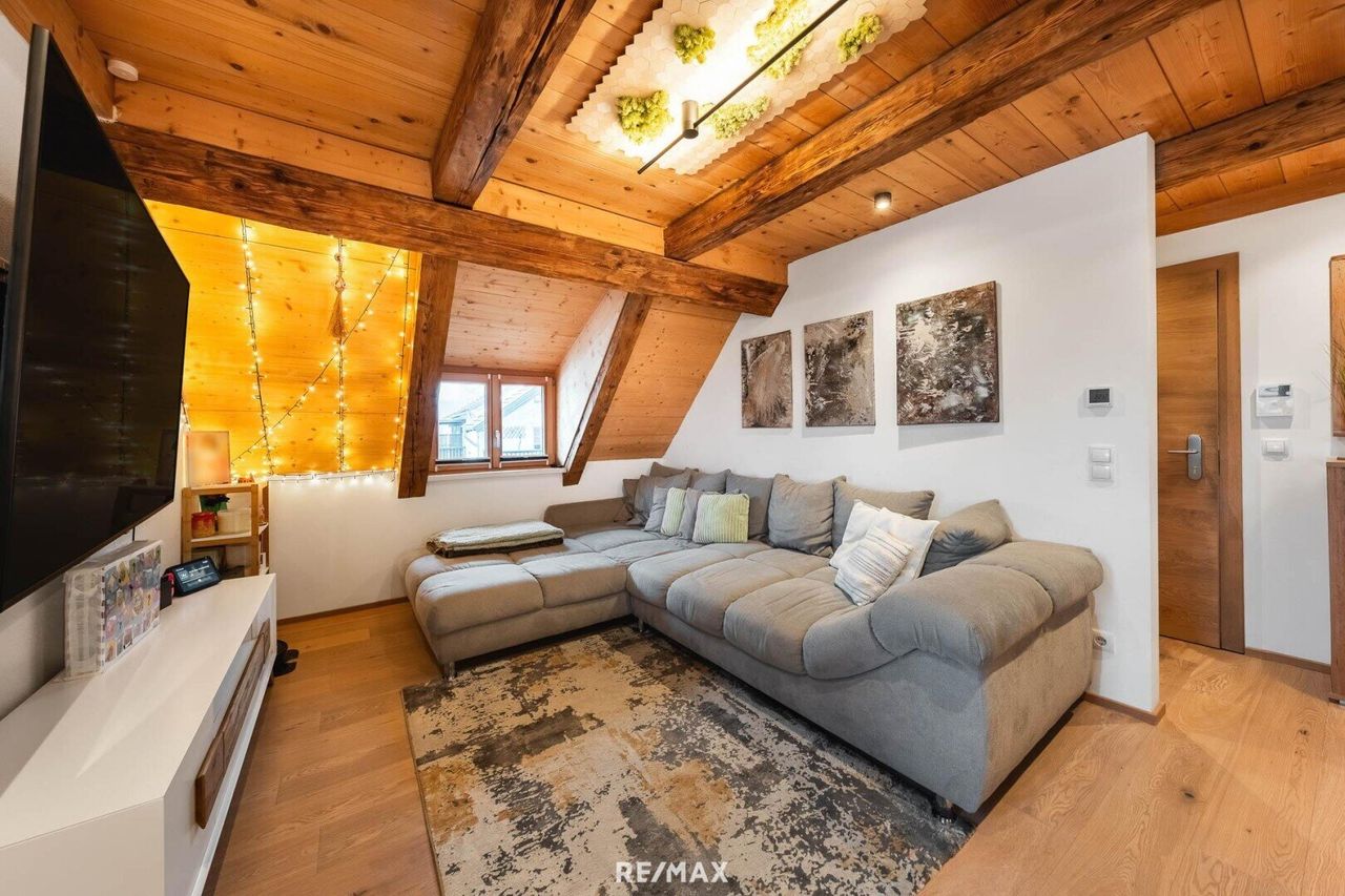 Diese topmoderne Maisonette-Dachgeschosswohnung in Kirchbichl überzeugt durch ihre großzügige Raumaufteilung, hochwertige Ausstattung und ein stilvolles Wohnambiente. Die Wohnung wurde 2019 umfassend renoviert und präsentiert sich heute in einem zeitgemäßen, sehr gepflegten Zustand. Auf 91,34 m² Wohnfläche verteilen sich drei helle Zimmer, die ein komfortables Wohnen auf zwei Ebenen ermöglichen.