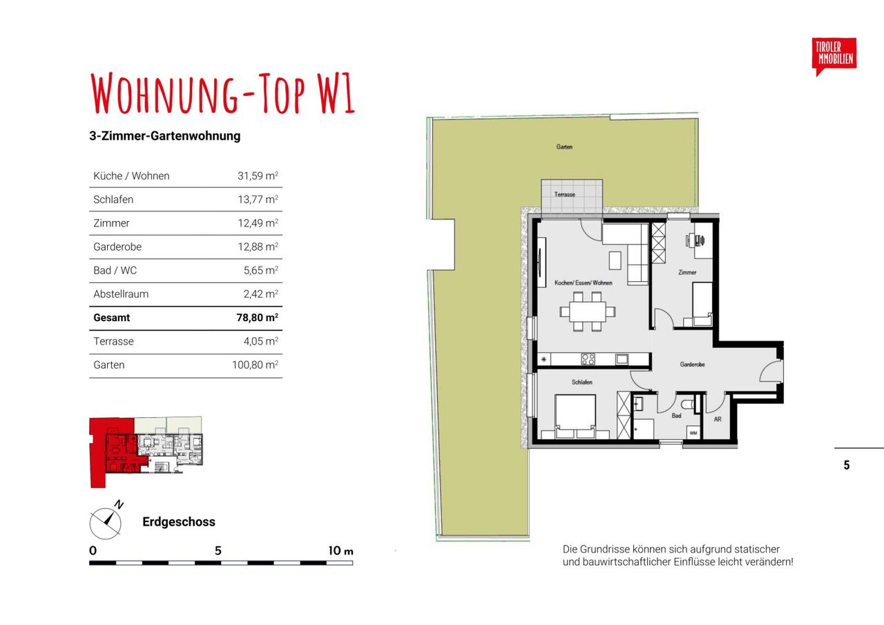 Die Gartenwohnung W1 bietet modernes Wohnen auf einer Ebene und direkten Zugang zu einem privaten Garten.