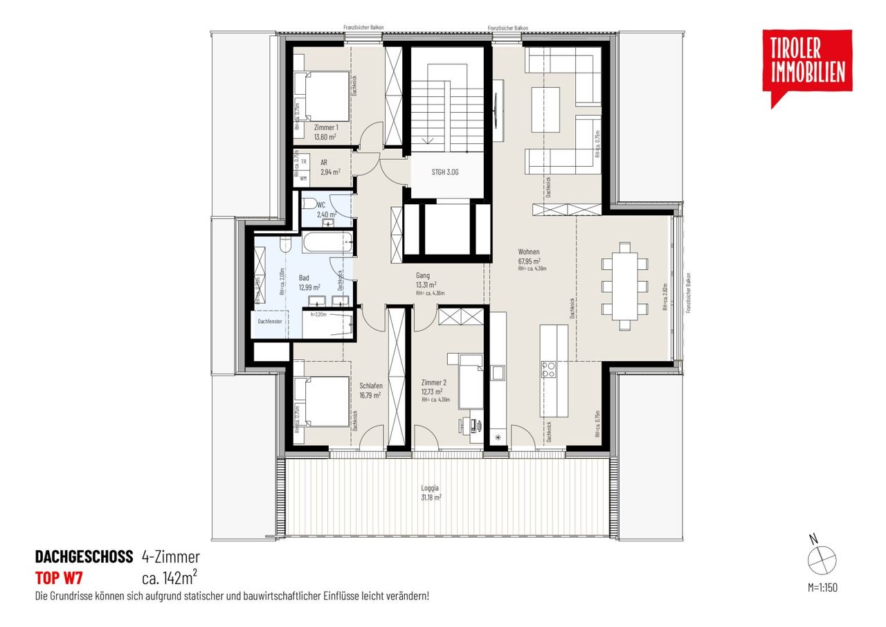 Das absolute Highlight ist die ca. 30 m² große Loggia, die Ihnen einen traumhaften Panoramablick auf den Hausberg Pendling schenkt. Hier können Sie Sonne genießen, entspannen oder Gäste empfangen – dieser Platz wird garantiert Ihr neues Lieblingsrefugium!