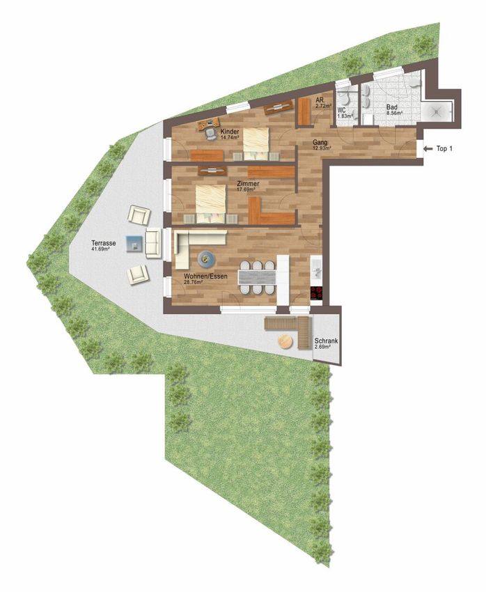 3-Zimmer-Gartenwohnung W1 – Naturresidenz Kaiseraufstieg