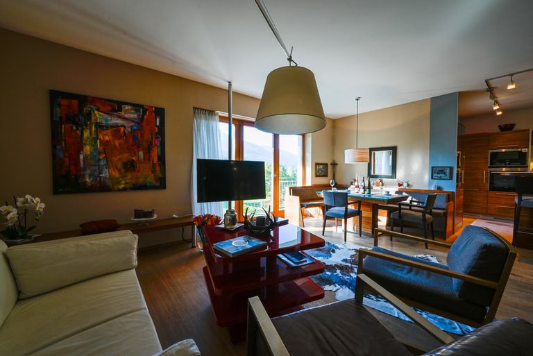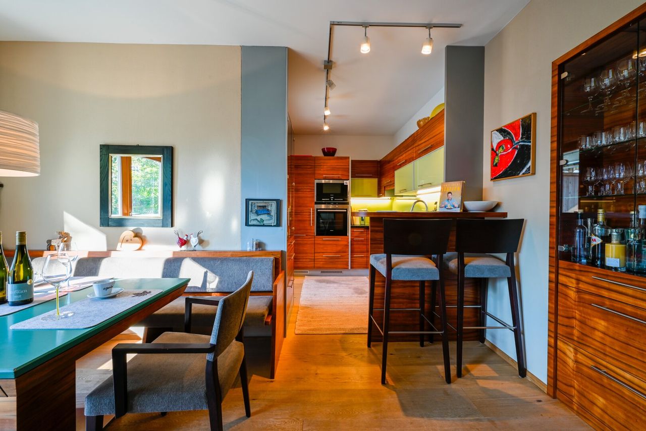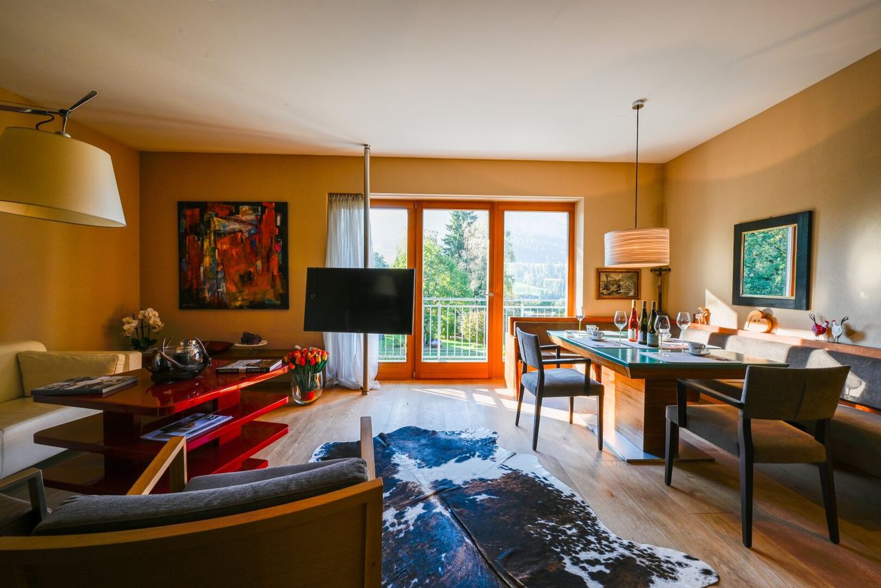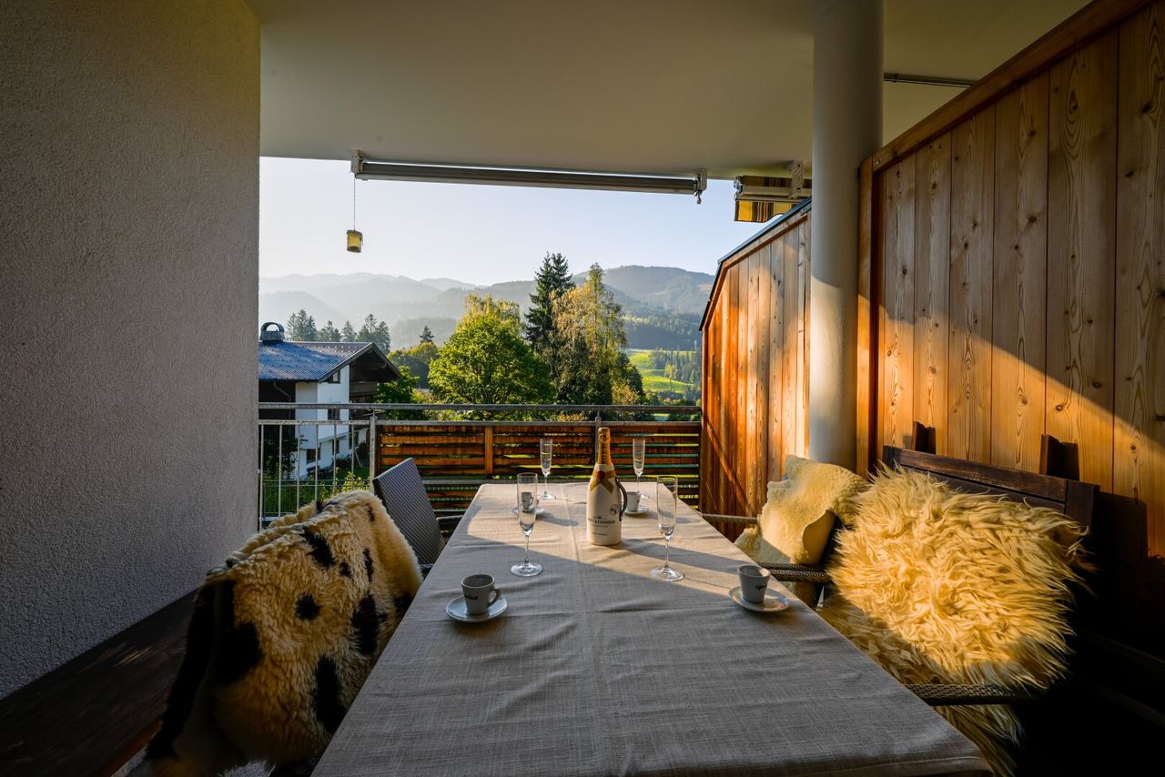 Der offene Wohn-, Koch- und Essbereich sorgt mit seiner Einrichtung für ein modernes und angenehmes Raumgefühl. Die perfekt ausgestattete Küche mit Geräten der Firma Siemens ist mit einer großen Terrassentür ausgestattet, die den Weg zur 15 m² großen Terrasse/Balkon freigibt – ideal, um den freien Blick auf den Hausberg Brandstadl und die umliegende Bergwelt wie den Wilder Kaiser, Pölven und die Hohe Salve zu genießen. Die Terrasse ist perfekt, um den ganzen Tag in der Sonne zu entspannen. Im Anschluss...