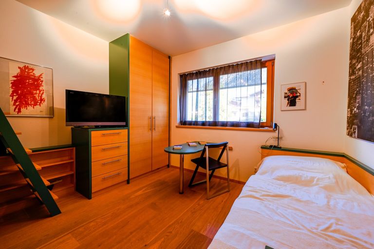 Das Kinderzimmer/Büro bietet ausreichend Platz, ebenso wie das großzügige Elternschlafzimmer, die ebenfalls durch die offene Decke ein ganz besonderes Raumgefühl ausstrahlen.