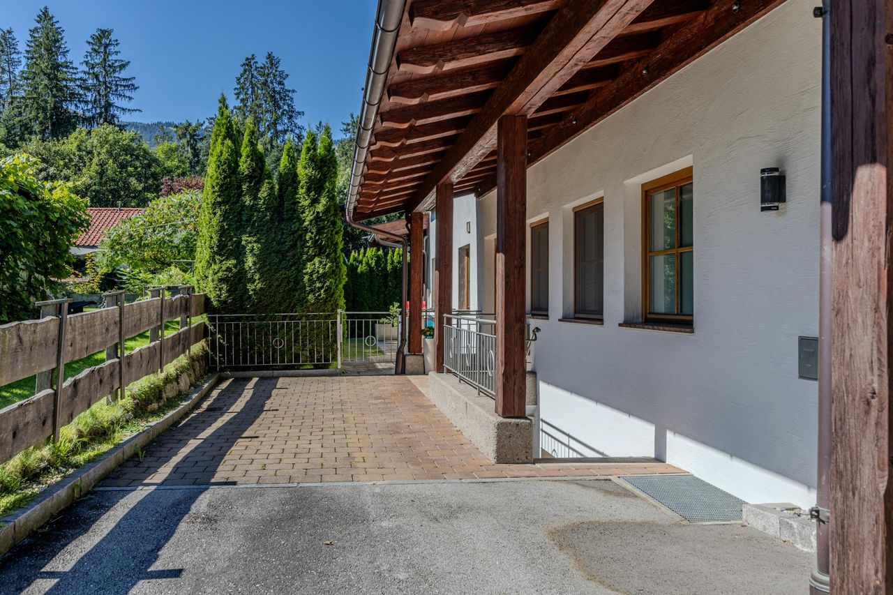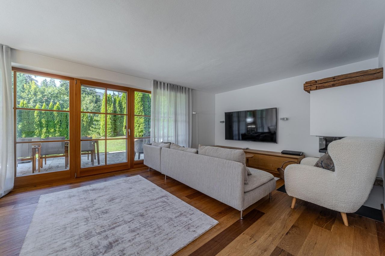 Viel Holz, eine großzügige, überdachte, einladende Sonnenterrasse, eine sehr gepflegte, ruhige Gartenfläche, ein Carportplatz sowie ein sehr gutes Raumkonzept, Alpiner Lifestyle und Tiroler Gemütlichkeit bietet diese sehr schöne Gartenwohnung. Besucherparkplätze sind vorhanden.
