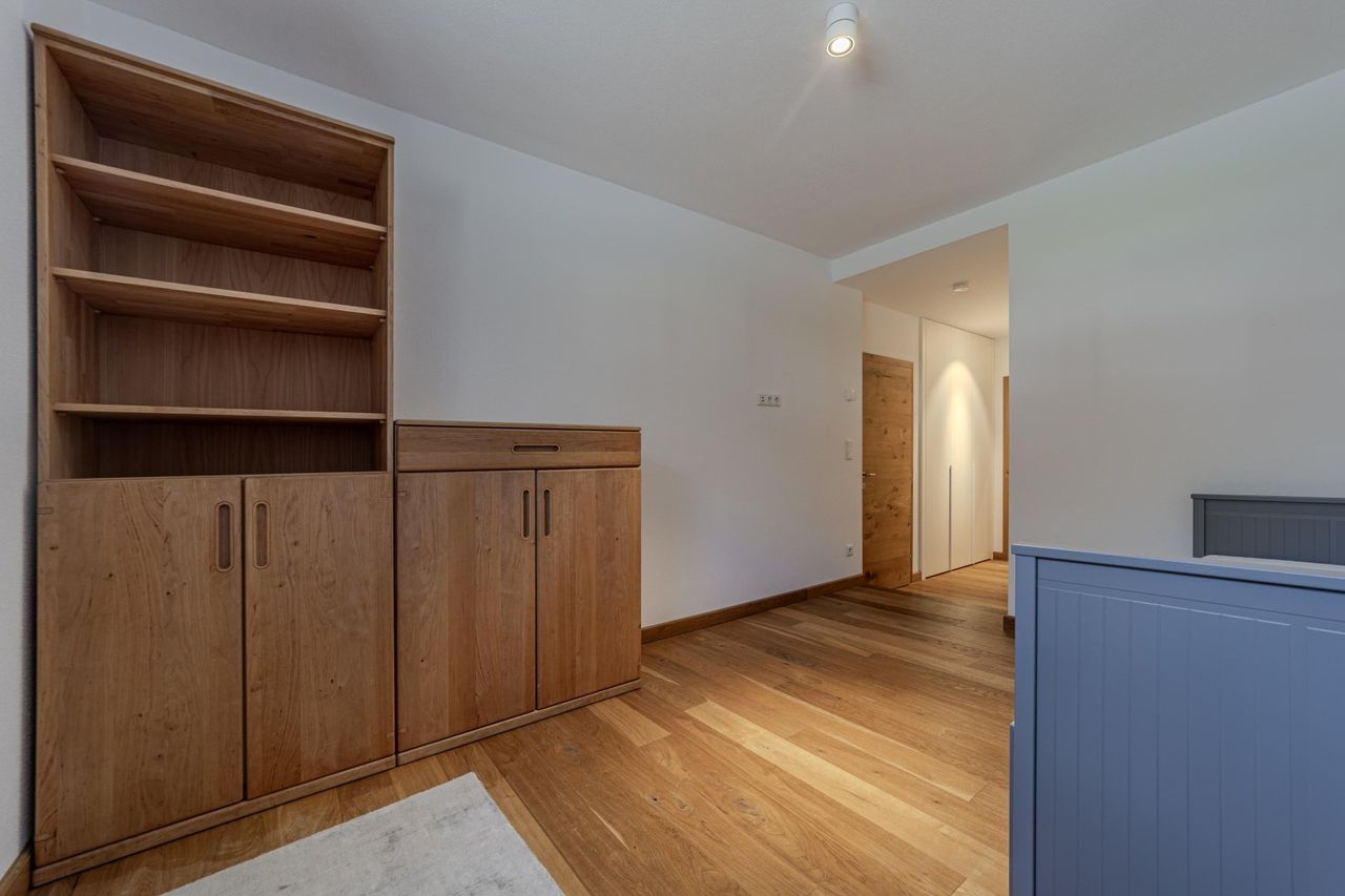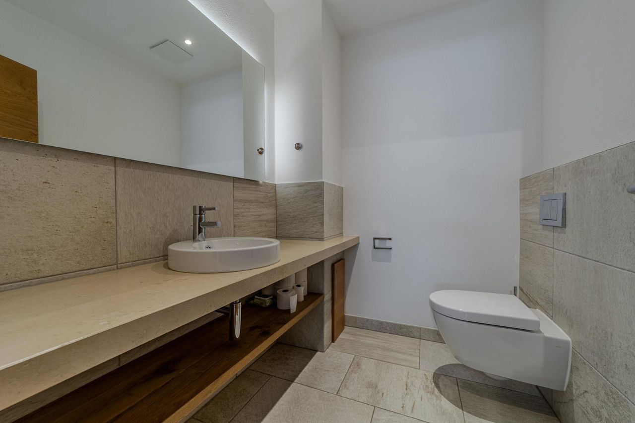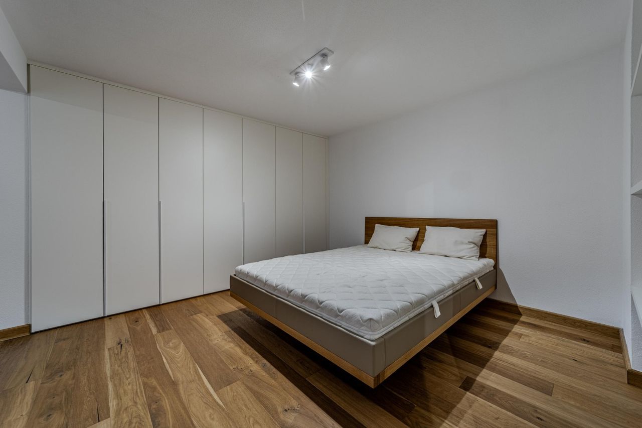 Diese wunderschöne, zweigeschossige, komplett möblierte, schicke Wohnung mit Haus-im-Haus-Charakter befindet sich in einer Wohnanlage mit nur insgesamt fünf Wohneinheiten. Diese Wohneinheit verfügt über einen eigenen Eingang auf der Ostseite sowie zusätzlich zugänglich über den UG-Eingang.