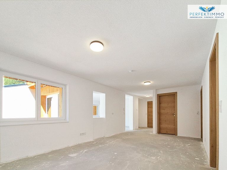 Die Wohnung verfügt über vorbereitete Anschlüsse für Sanitäranlagen, welche derzeit noch nicht eingebaut sind und im Zuge der weiteren Fertigstellung erfolgen. Ergänzt wird die hochwertige Ausstattung durch eine effiziente und nachhaltige Beheizung mittels Fernwärme in Kombination mit einer angenehmen Fußbodenheizung. Diese sorgt für ein gleichmäßiges Raumklima, warme Böden an kühleren Tagen und ein behagliches Wohngefühl in allen Jahreszeiten. Gerade für Familien mit Kindern bietet diese Heizform zusätzlichen Komfort und Sicherheit im Alltag. Ein besonderes Highlight dieser Wohnung ist die großzügige Terrasse mit einer Fläche von ca. 19,45 m², die zu entspannten Stunden im Freien einlädt und zusätzlichen Wohnraum unter freiem Himmel schafft. Ob gemeinsames Frühstück in der Morgensonne, gemütliche Nachmittage mit der Familie oder ruhige Abende in naturnaher Umgebung – hier entstehen wertvolle Momente des Zusammenlebens. Ergänzt wird dieses Freiluftangebot durch einen zusätzlichen Balkon mit ca. 4,46 m², der weitere Möglichkeiten bietet, frische Luft und Ausblick zu genießen.