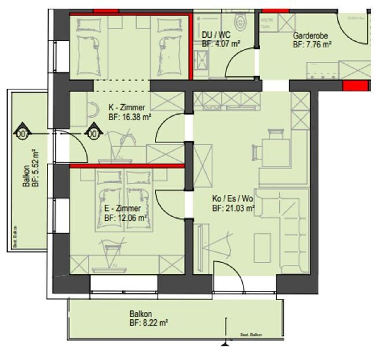 • Zwei Balkone (ca. 8,22 m² & 5,52 m²)