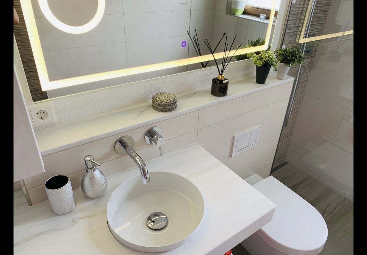 Mit einer Wohnnutzfläche von 39 m² erhalten Sie alles, was ein gemütliches und praktisches Apartement ausmacht. Es verfügt über zwei Zimmer (ein separates Schlafzimmer), eine hochwertige Markenküche, ein elegantes Badezimmer, indirekte Beleuchtungselemente und eine Fußbodenheizung. Mediterrane Fliesen und ein geschmackvoller Echtholzparkett sorgen für Behaglichkeit. Im Badezimmer wurde zeitloser, italienischer Marmor verlegt. Die natürliche Aussicht auf die Berge und das kraftvolle Grün ermöglichen es, bei maximaler Ruhe zu regenerieren. Am Balkon können Sie sich mit der Natur verbinden und...
