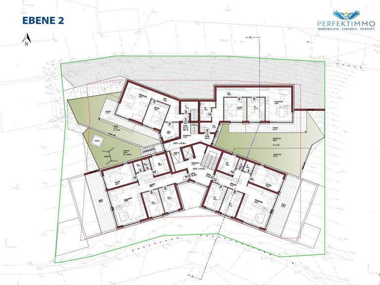 Auf Ebene 2 liegen die Wohnungen Top 3, Top 4, Top 5 und Top 6. Im Westen befindet sich ein Spielplatz, der allen Bewohnern des Hauses zur Verfügung steht.