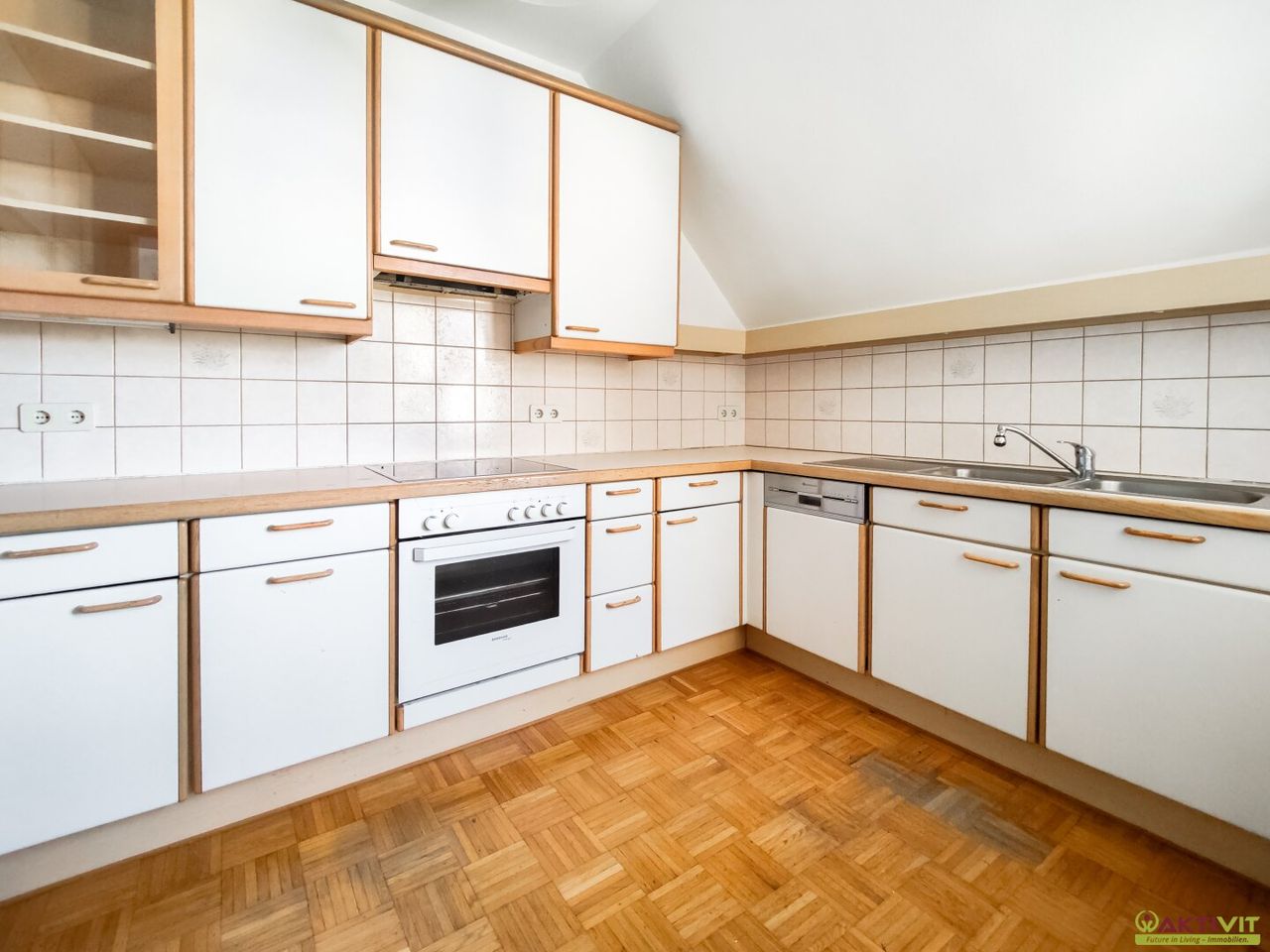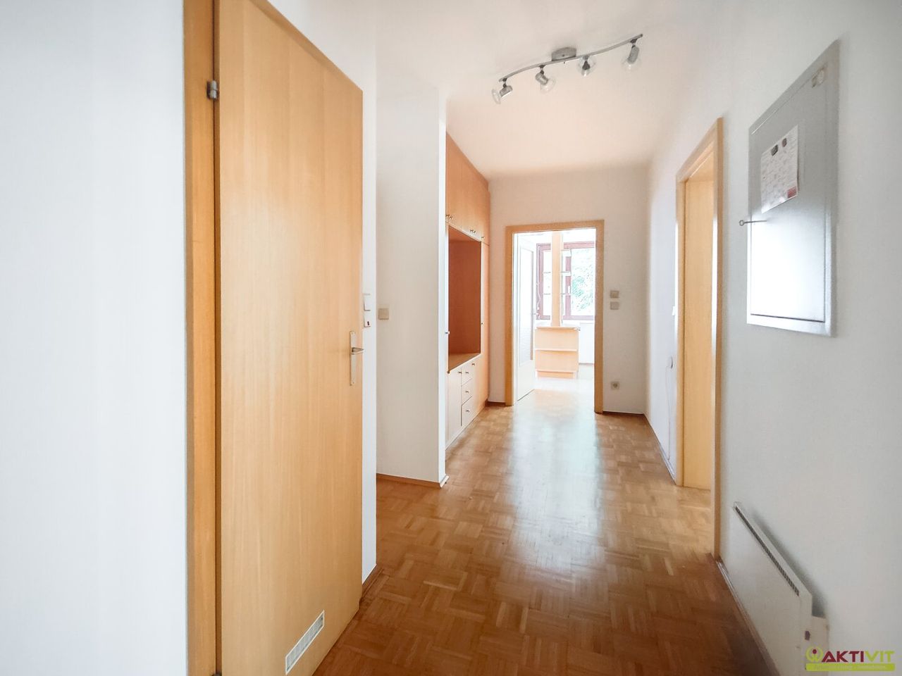 Die Wohnung befindet sich in einem Mehrparteienhaus mit Satteldach und ist im Wohnungseigentum. Sie verfügt über eine Wohnfläche von ca. 85 m², verteilt auf drei Zimmer. Die Raumaufteilung umfasst ein Wohnzimmer und zwei Schlafzimmer, eine separate Küche mit Einbauküche, ein Badezimmer mit Dusche, ein separates WC sowie einen großen Vorraum mit Abstellbereichen.