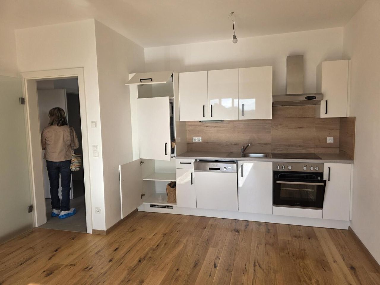 Der helle, offene Wohn-Ess-Bereich mit moderner Einbauküche überzeugt durch seine effiziente Raumaufteilung und schafft ein großzügiges Wohngefühl. Große Fensterflächen bringen viel Tageslicht in die Räume und sorgen für eine freundliche, einladende Atmosphäre.